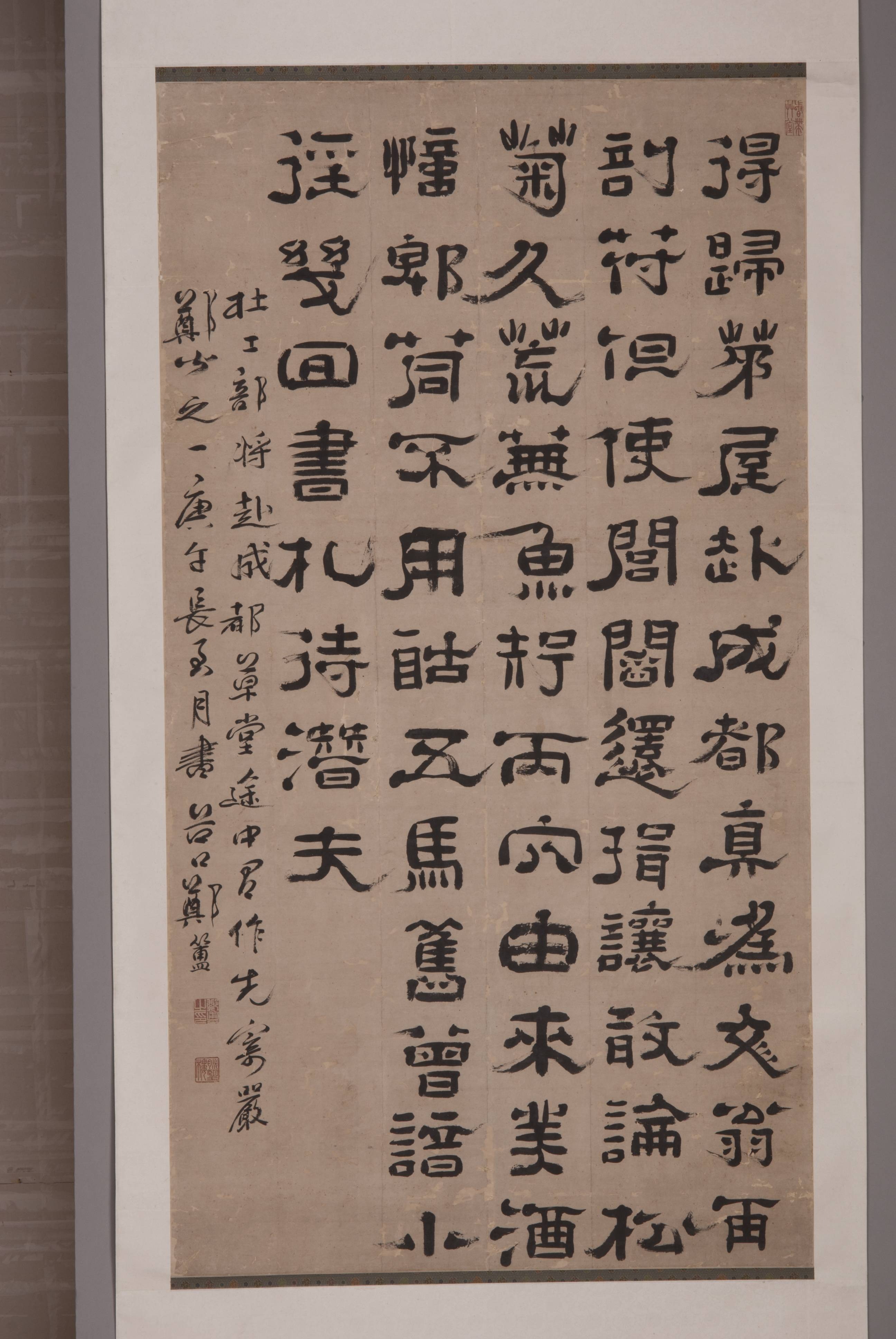清康熙二十九年郑簠隶书将赴成都草堂途中有作先寄严郑公五首之一字轴