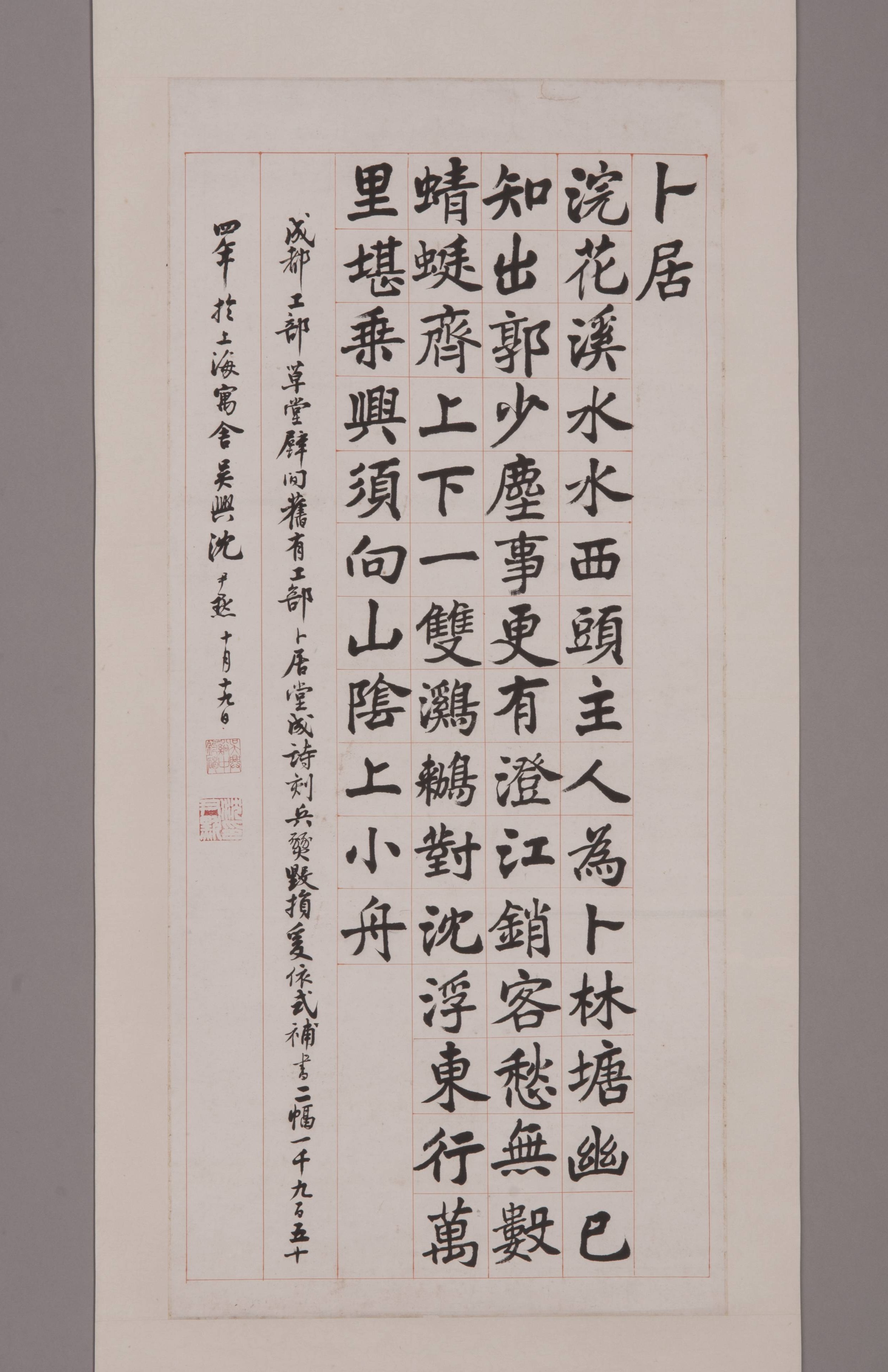 1954年沈尹默楷书卜居字轴