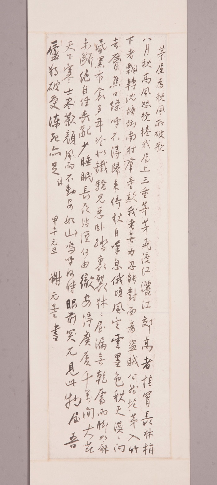 1956年谢无量行书茅屋为秋风所破歌字轴