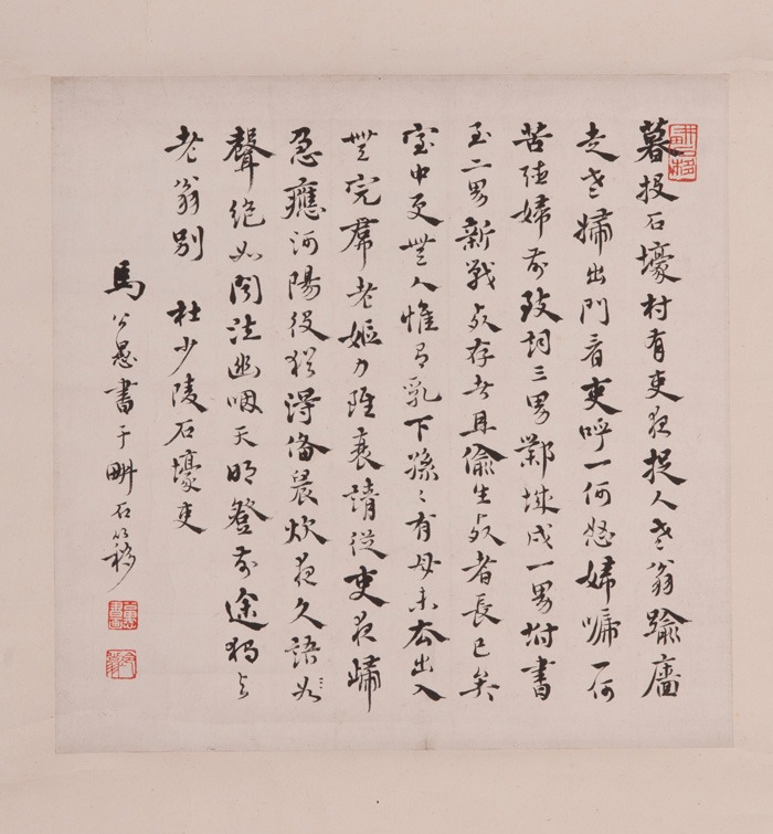 现代马公愚行书石壕吏字轴