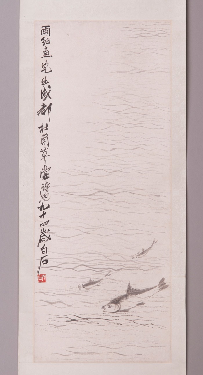 1954年齐白石水槛遣心二首之一雨细鱼儿图轴